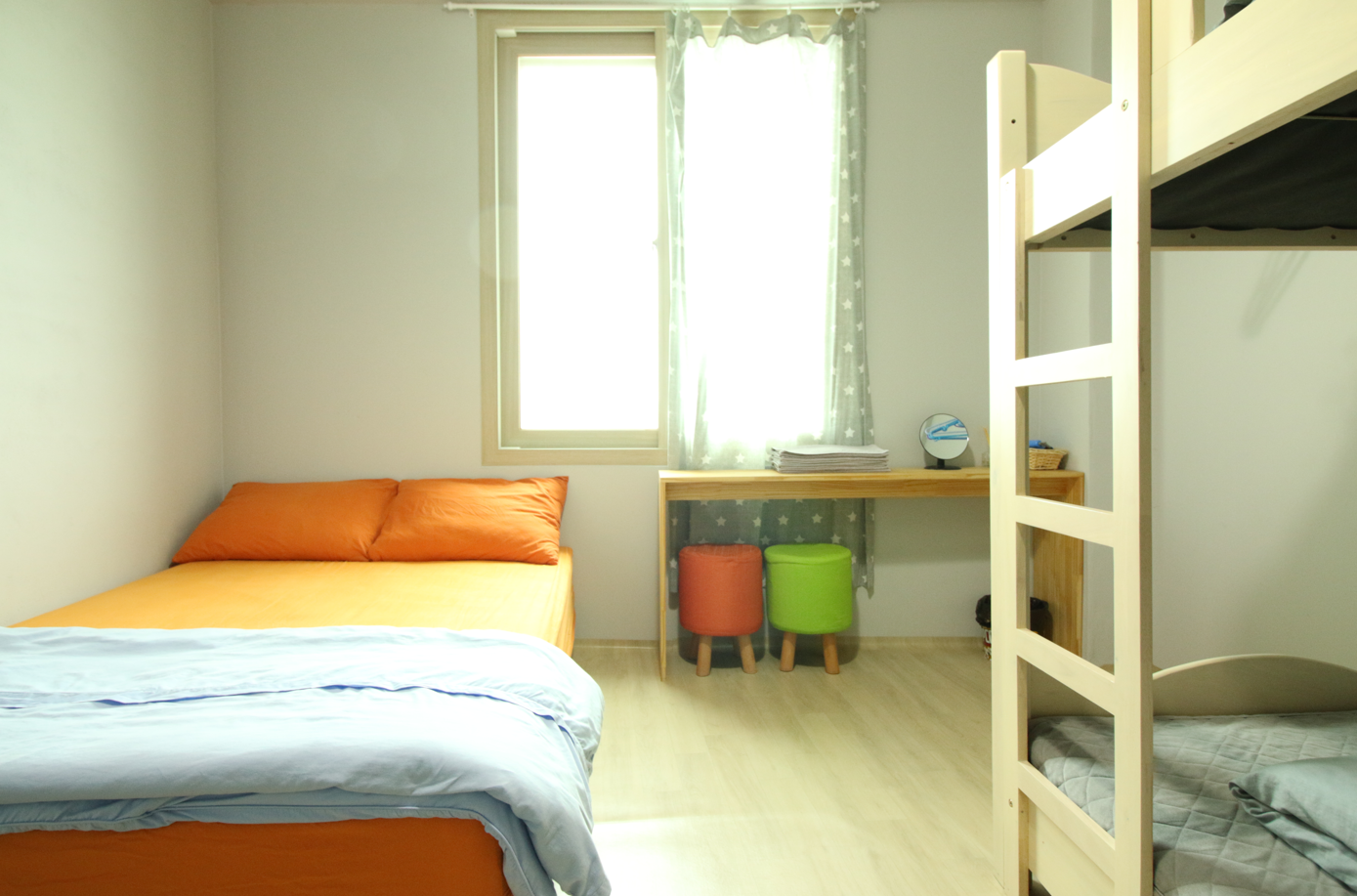 완도네시아 게스트하우스 401호는 2층침대가 있어 아이들과 머물기에 좋습니다.