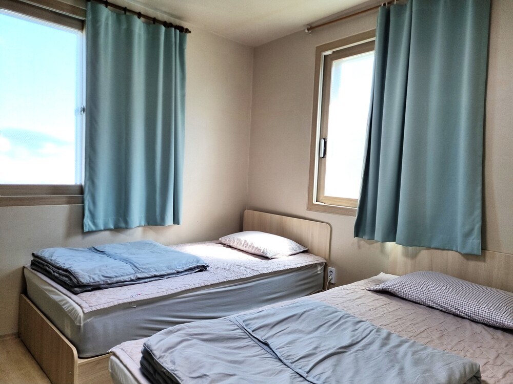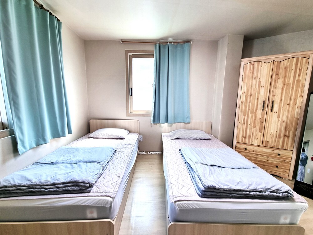 침대 아래 엑스트라 베드를 사용하면 세 명에게도 충분한 공간이 됩니다.