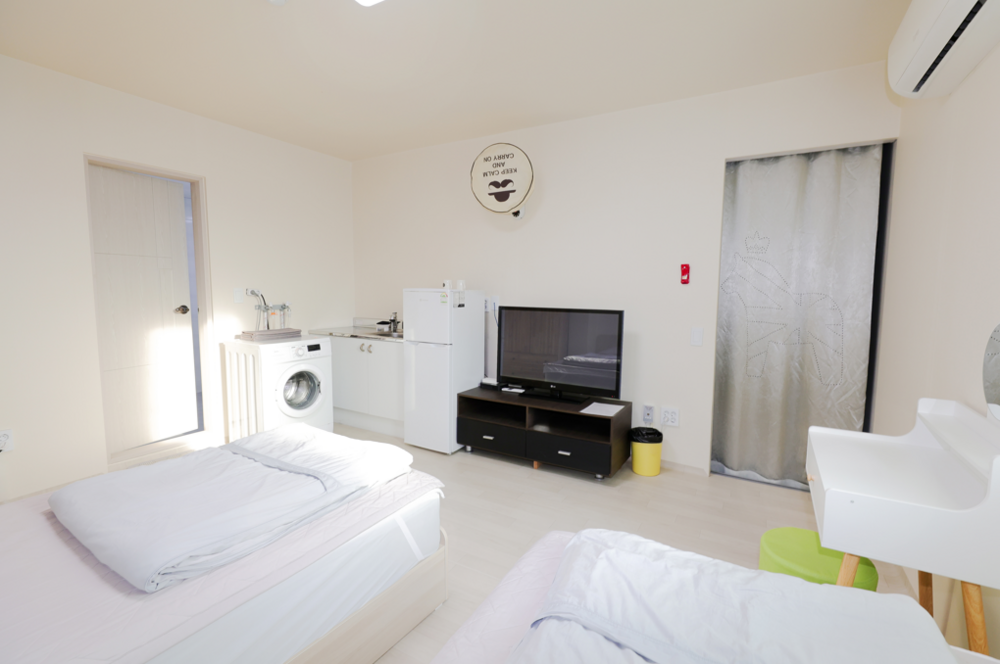 Room Feature ㅣ The room is equipped with a sink, refrigerator, and washing machine to live comfortably like at home.